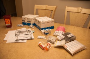 Finally, on Friday, March 9, the box of meds came. Typically, when I think of meds, I think of an orange plastic bottle with a white cap. For IVF, the box looked like I ordered several pairs of shoes and they all shipped together. I opened the box, and pulled out the first box of meds, then the second, then the third…I thought I would never get the bottom. It was kinda like Christmas except instead of shiny gifts, I got syringes and boxes of meds containing little glass bottles of powdered stuff and sterile water. The only mix up was a missing ice pack for one of the meds, but the pharmacy sent me an overnight package with a new bottle secured in an ice pack. A minor setback, but it didn’t mess up our timing.